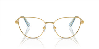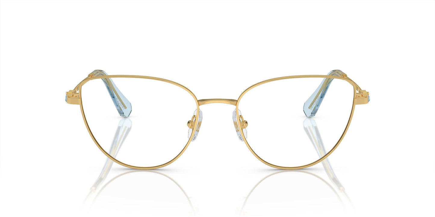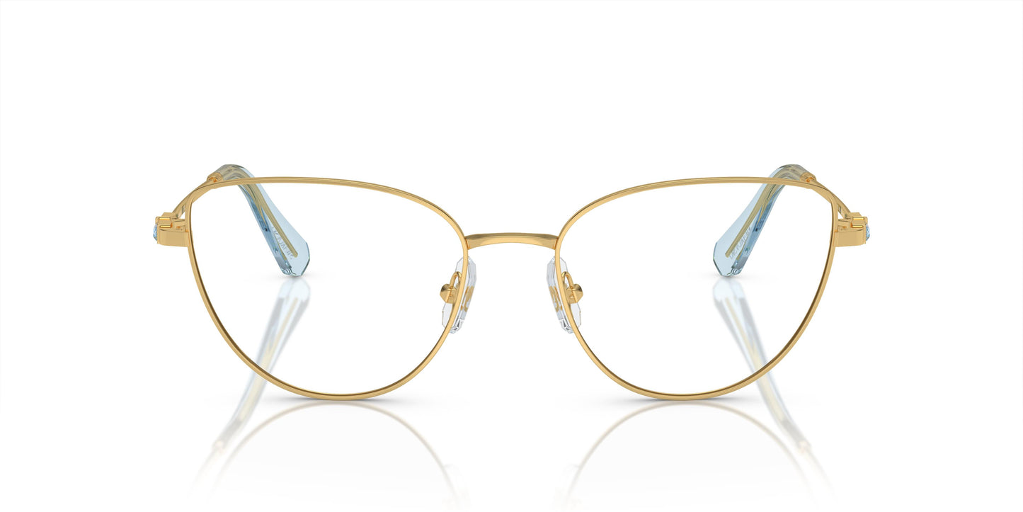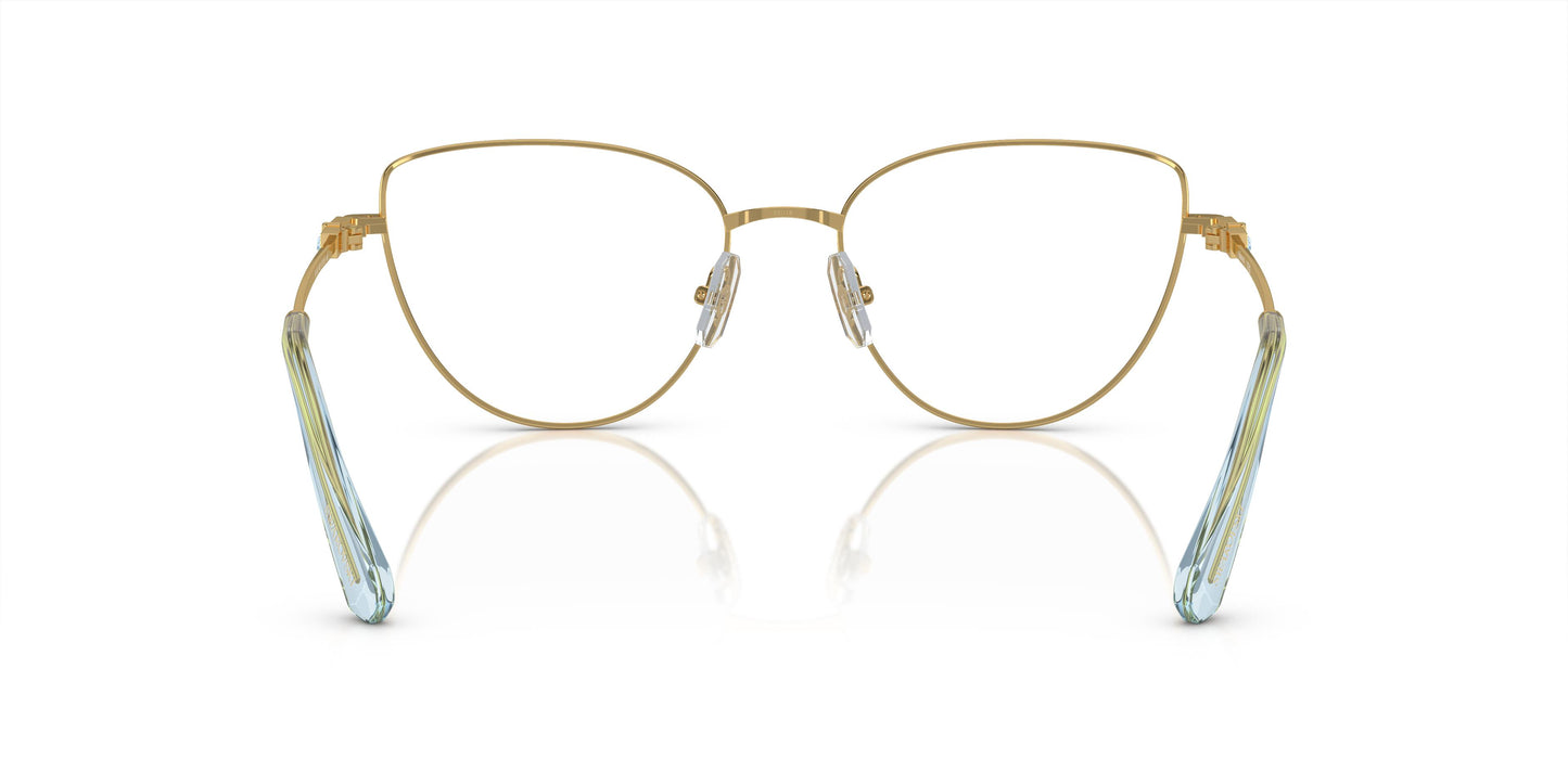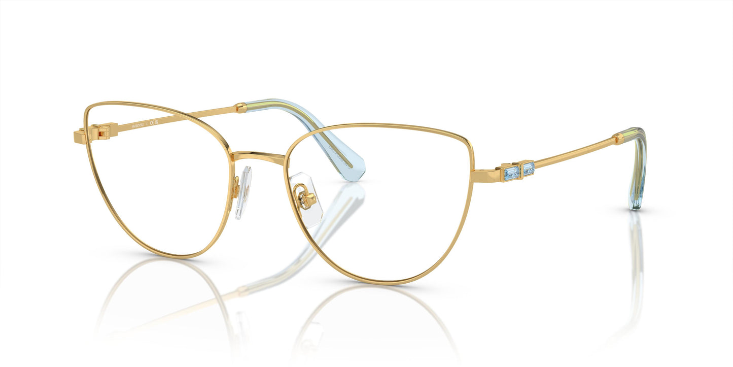 Présentés dans des tiges métalliques, l'intensité des cristaux baguette Swarovski devient plus forte que jamais, comme dans la joaillerie. Les cristaux lumineux de cette monture œil de chat ne sont pas seulement décoratifs, mais font également partie de la charnière. Les cristaux baguette dans des couleurs transparentes, aigue-marine et golden shadow brillent sur les tiges comme partie du design de la charnière. Monture œil de chat métallique sophistiquée avec des tiges brillantes grâce aux cristaux, donnant lieu à un modèle de vue sophistiqué.