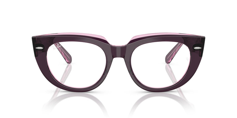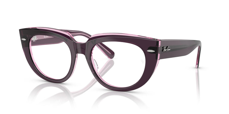 Un'icona Ray-Ban rivisitata in chiave ottica femminile. Doreen celebra le dimensioni definite con una linea sopraccigliare distintiva in colori pieni e trasparenti. Le iconiche borchie metalliche sul frontale panthos completano questo look audace. Un effetto bicolore tridimensionale con colori pieni su montatura trasparente. Aste di grande impatto rifinite con il logo Ray-Ban per un look autentico.
