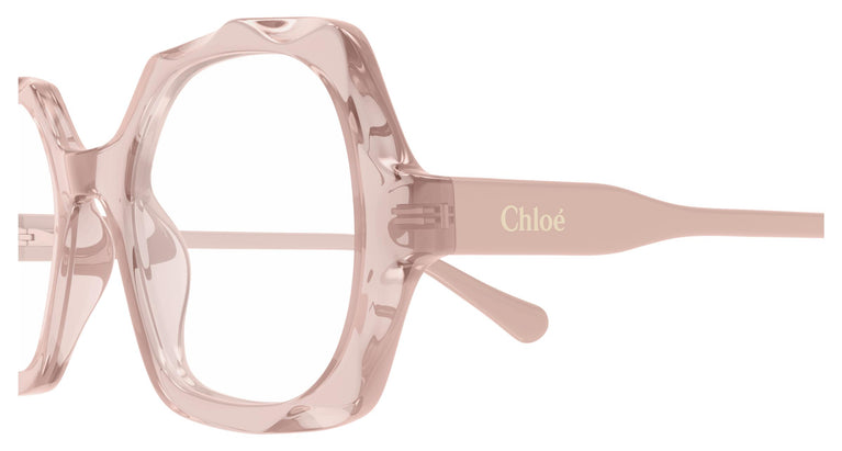 Vierkant montuur van acetaat met een delicaat gefreesd schelpeffect aan de voorkant. Transparante kleurencombinatie aan de voorkant en gladde ton-sur-ton veren. Een kinderversie van een van Chloé's bestverkochte damesmodellen.