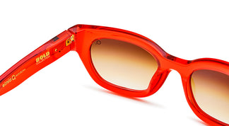 Ontdek verfijning met de Brutal zonnebril van Etnia Barcelona, een exclusief damesontwerp dat de elegantie van de cat-eye-stijl combineert met de gedurfdheid van de vlindervorm. Het montuur, gemaakt van levendig rood acetaat, trekt de aandacht en verfraait elke outfit. De subtiel vormgegeven veren en harmonieuze brug zorgen voor een perfecte pasvorm. Uitgerust met meekleurende glazen past deze bril zich aan elke lichtflits aan en biedt een sublieme en unieke visuele ervaring.