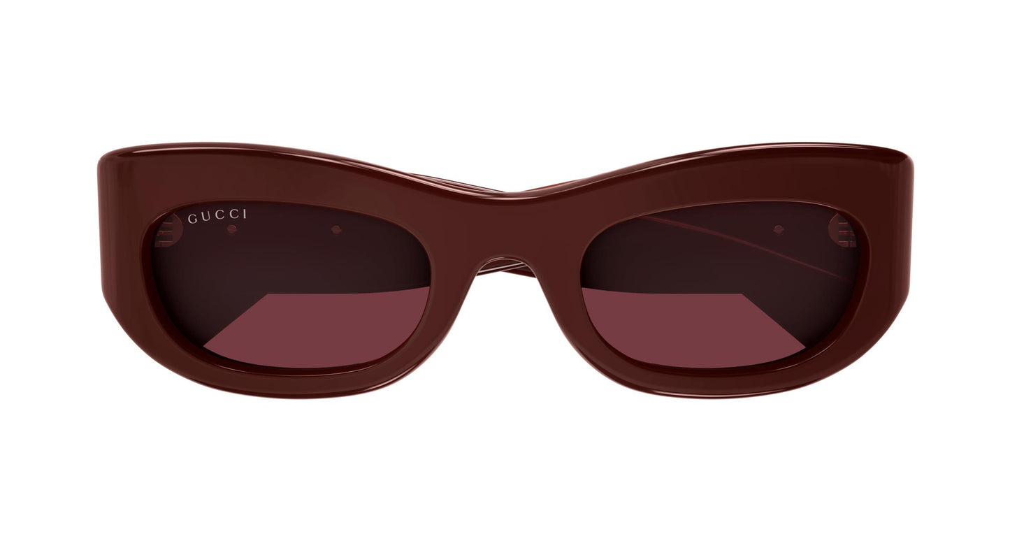Een gedurfde constructie die de stijlen van Sabato De Sarno's eerste modeshow weerspiegelt, maar ze nog gedurfder maakt. Opvallend cat-eye-ontwerp. Driedimensionaal Gucci-logo op de veren.