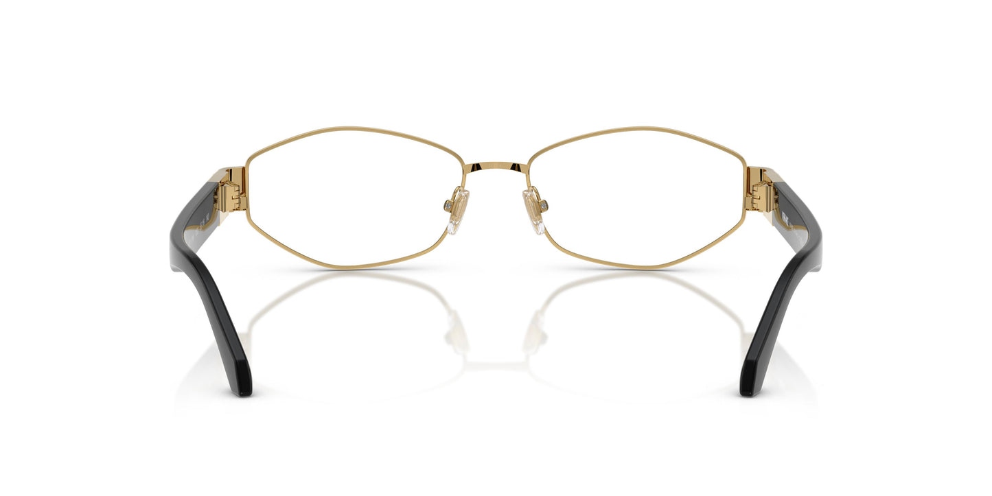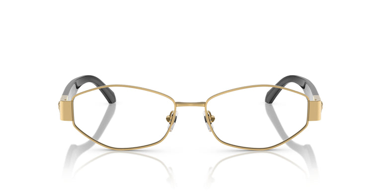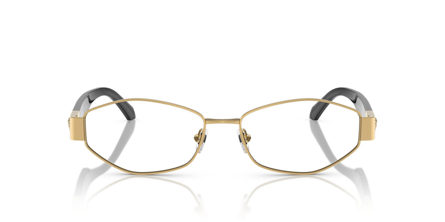 Een slim businessmodel geüpdatet met een gedurfd, onregelmatig en eigentijds montuur. Het opvallende montuur heeft een volledig metalen voorkant en brede acetaat veren met een licht gebogen profiel. Het klassieke versace kwallenplaatje geeft deze ultramoderne, vrouwelijke look een ongeëvenaarde weelde. Een viering van individualiteit, verankerd in de onmiskenbare ontwerpcodes van versace. Kies uit twee elegante kleurencombinaties: goud en zwart en lichtgoud en Havana.
