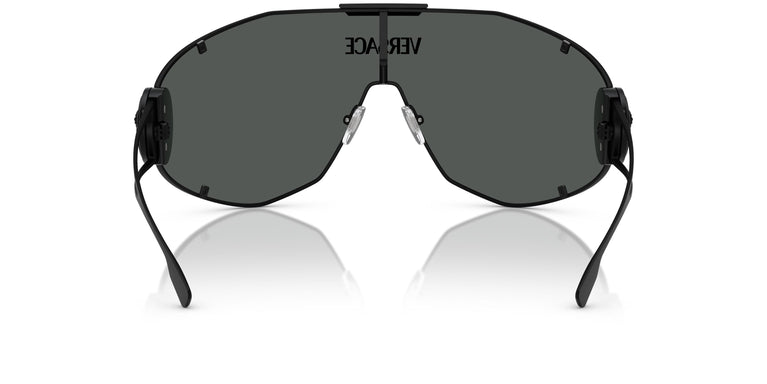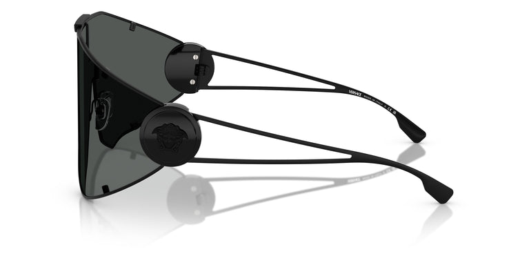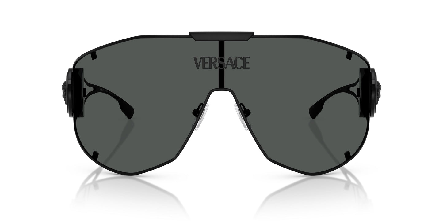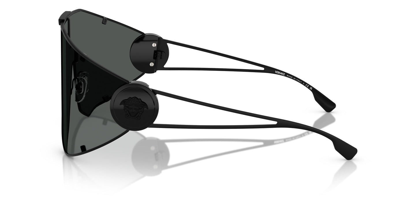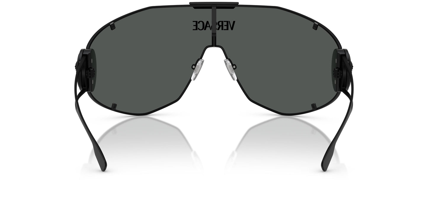 Versace vertaalt haar visie met dit gewaagde oversized maskermontuur dat synoniem staat voor glamour doordrenkt met attitude. De avant-gardistische structuur van de nieuwe full wrap-around lens bewijst dat innovatie de focus van het merk blijft. De typische Versace-look met uniseks aantrekkingskracht. Kwallenhoofd in reliëf op de slapen, passend bij de kleur van het montuur.