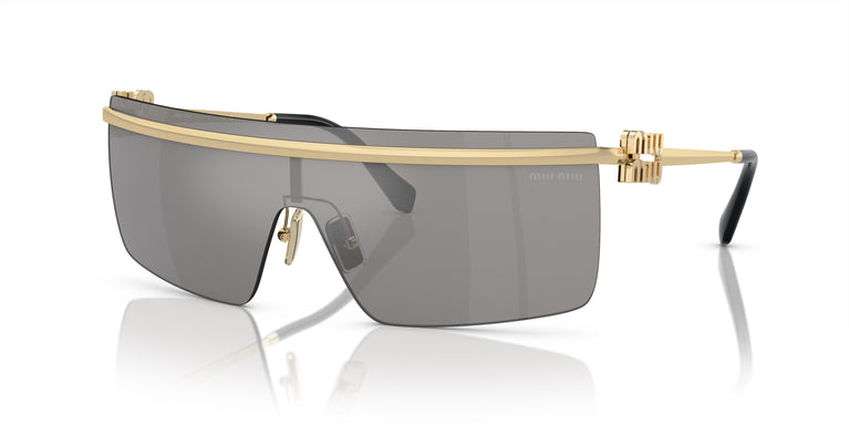 Het moderne, omsluitende montuur zonder rand maakt dit model de perfecte keuze voor wie wil opvallen. De metalen balk en het verticale logo op de tempel vormen het middelpunt dat het ontwerp accentueert, naast de opvallende kleuren van de lenzen. Uniek randloos montuur met een stijlvolle metalen balk die de lens met de tempel verbindt, waar het verticale Miu Miu-logo opvalt. Verstelbare metalen neuspads passen bij het logo, dat ook deel uitmaakt van het functionele scharnierontwerp.