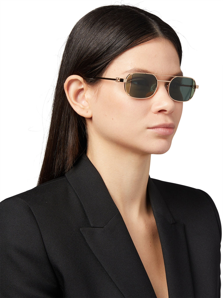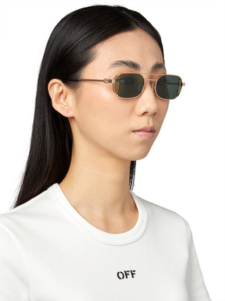 Ontdek verfijning met de Off-White Lynn zonnebril, een uniseks zonnebril die elegantie en moderniteit combineert. Het vierkante montuur in oogverblindend goud legt de essentie van ingetogen luxe vast. De zorgvuldig ontworpen veren zorgen voor een comfortabele en veilige pasvorm, terwijl de brug voor perfecte balans zorgt. Deze zonnebril is dé must-have voor wie op zoek is naar onderscheid en stijl in elk detail. Ideaal om elke look te versterken met een vleugje exclusiviteit en avant-garde.
