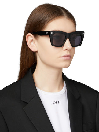 Ontdek de verfijning van de Off-White Selma zonnebril, een uniseks zonnebril die eigentijdse elegantie belichaamt. Het vierkante montuur in verfijnd zwart biedt een perfecte balans tussen stijl en functionaliteit. De zorgvuldig ontworpen veren geven een moderne touch, terwijl de brug zorgt voor een comfortabele en veilige pasvorm. Perfect voor wie op zoek is naar een accessoire dat zijn of haar persoonlijkheid accentueert met een vleugje klasse. Deze zonnebril is de belichaming van ingetogen luxe.