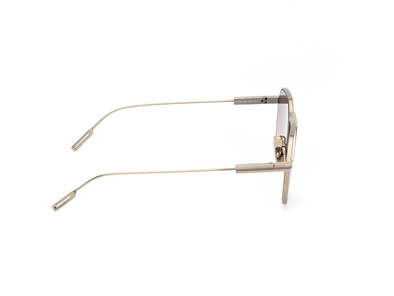 Ontdek de verfijning en ongeëvenaarde stijl van de Zegna zonnebril model Ez0234. Het metalen montuur in een elegante glanzende bleke gouden kleur combineert perfect met gradient roviex-lenzen, waardoor een visuele harmonie ontstaat die betovert. De zorgvuldig ontworpen pootjes verbinden zich met de brug met een delicatesse die pure vakmanschap weerspiegelt. Een ideaal kaliber dat het gezicht omhult met onderscheiding en persoonlijkheid. Deze bril is de definitie van tijdloze elegantie.
