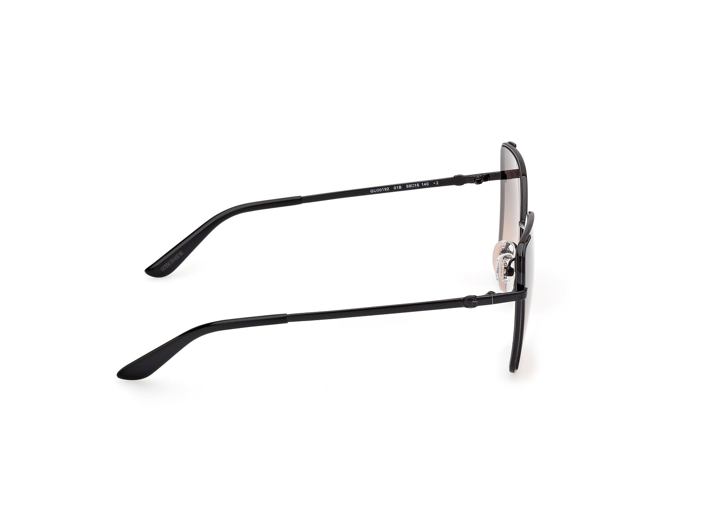 Oppdag raffinement og stil med Guess GU00192 solbriller, et tilbehør designet for kvinner som setter pris på eleganse. Deres sofistikerte skinnende svarte metallrammer rammer inn et sommerfugldesign som fremhever ethvert ansikt. De delikat utformede templene blandes med en bro som gir et snev av særpreg. Gradient smoke-linsene tilbyr en sømløs overgang som fanger essensen av glamour. Et tilbehør som redefinerer urban eleganse.