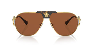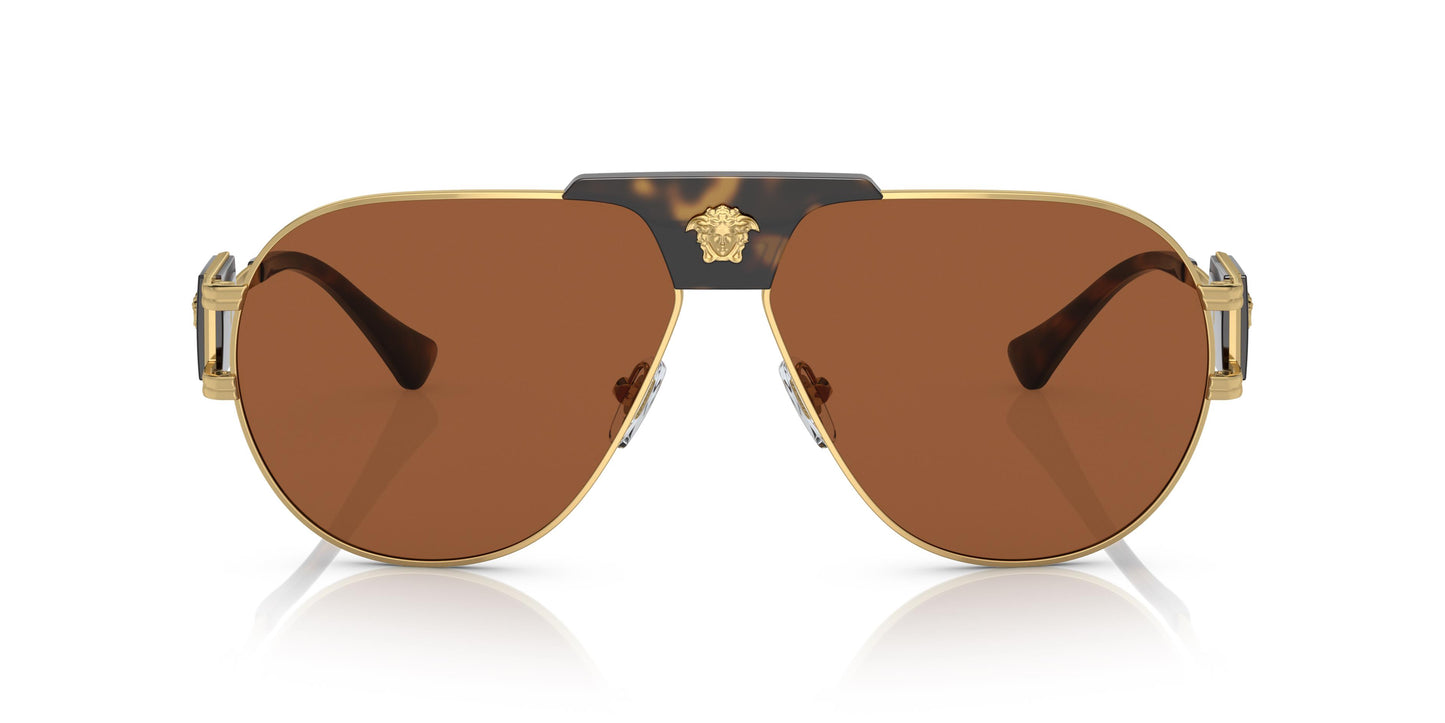 Forførende maskulinitet møter det umiskjennelige uttrykket til Versace-merket. Omfavn Medusas hypnotiske kraft med denne dynamiske pilotbrillen. Våg å se bort. Liten, preget manet i midten og kvadratisk manetdetalj for en luksuriøs finish; pilotinnfatning i blygrått og gull; sorte, havana og optisk hvite tinningspisser; manetkontrasterende fargekontrast på bro og stengel