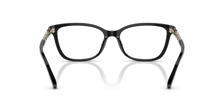 MK łączy nowoczesny i wyrafinowany przód i korpus z elegancką linią łańcuszków. Prostokątna oprawka z głębokim szylkretowym wykończeniem, metalowymi detalami z ogniw łańcuszkowych i logo MK na zausznikach. Oprawka z prostokątnym frontem z octanu i detalami z ogniw łańcuszkowych na zausznikach ze zintegrowanym logo MK.