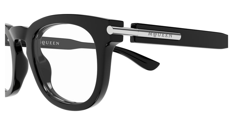 La «Cross-Bar», un elemento utilizado originalmente en la colección otoño-invierno 1995 Highland Rape, se ha renovado e introducido como nueva firma de la Casa, marcando el inicio de un nuevo capítulo. La nueva e icónica Cross-Bar integra la bisagra y dibuja la unión entre el frontal y las varillas en acetato integral. El extremo redondeado de la Cross-Bar es visible en el frontal, lo que añade un toque de sofisticación a este frontal pantos para hombre, fácil de llevar y atemporal. El nuevo logotipo de McQueen está grabado a láser en la Cross-Bar metálica.