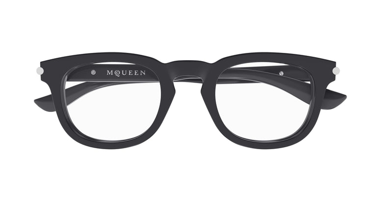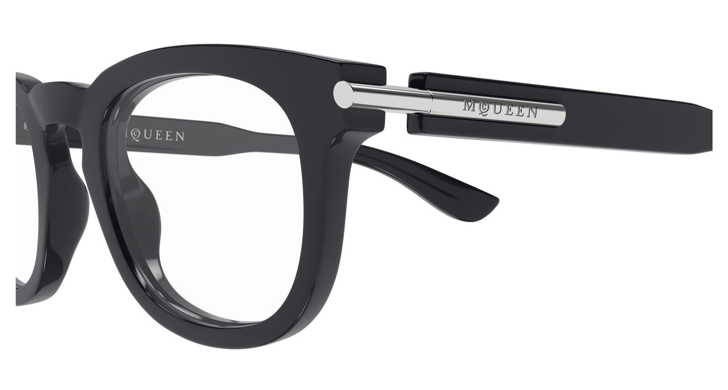 La «Cross-Bar», un elemento utilizado originalmente en la colección otoño-invierno 1995 Highland Rape, se ha renovado e introducido como nueva firma de la Casa, marcando el inicio de un nuevo capítulo. La nueva e icónica Cross-Bar integra la bisagra y dibuja la unión entre el frontal y las varillas en acetato integral. El extremo redondeado de la Cross-Bar es visible en el frontal, lo que añade un toque de sofisticación a este frontal pantos para hombre, fácil de llevar y atemporal. El nuevo logotipo de McQueen está grabado a láser en la Cross-Bar metálica.