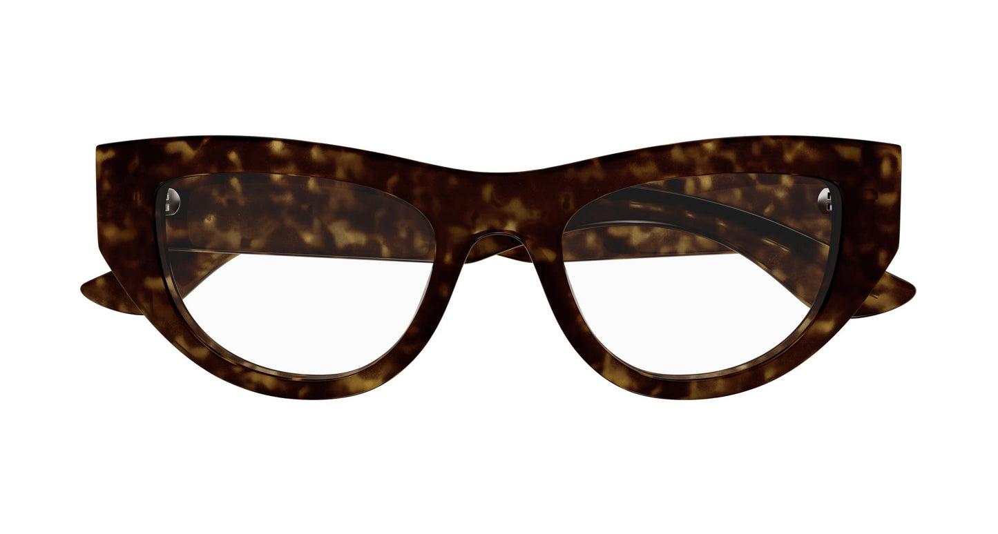 La historia del logotipo de McQueen se caracteriza por un diseño con carácter, pero fácil de llevar, con la marca visible. Los atrevidos volúmenes del frontal de acetato se combinan con unas varillas inyectadas. Femenino diseño en forma de ojo de gato. El nuevo logotipo McQueen viene aplicado en las varillas mediante un adhesivo metálico.