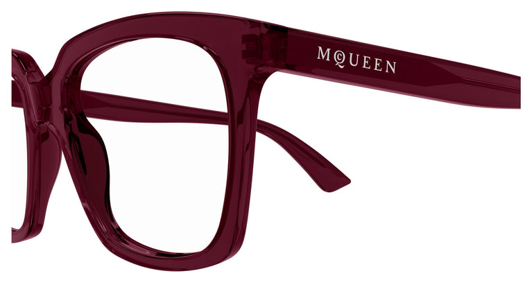 Signature Essential evoca el alma pura y clásica de Alexander McQueen a través de una familia ligera y fácil de llevar. Modelo femenino rectangular oversize totalmente de acetato ligero. Logotipo en letra grabado a láser con esmalte.