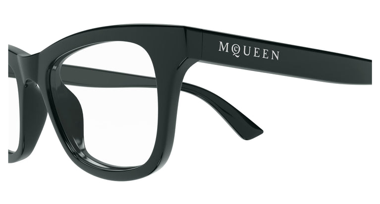 Signature Essential evoca el alma pura y clásica de Alexander McQueen a través de una familia ligera y fácil de llevar. Diseño femenino en forma de ojo de gato totalmente de acetato ligero. Logotipo en letra grabado a láser con esmalte.