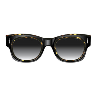 Las clásicas gafas de sol americanas adquieren un aire más oscuro. Creadas en colaboración con the great frog, la joyería gótica de la marca se ha plasmado en los emblemas de la daga y la cadena lock down que adornan la montura. Se fijan con tornillos hexagonales. Las robustas patillas se despliegan para revelar el logotipo de the great frog. Producción limitada de 250 monturas.