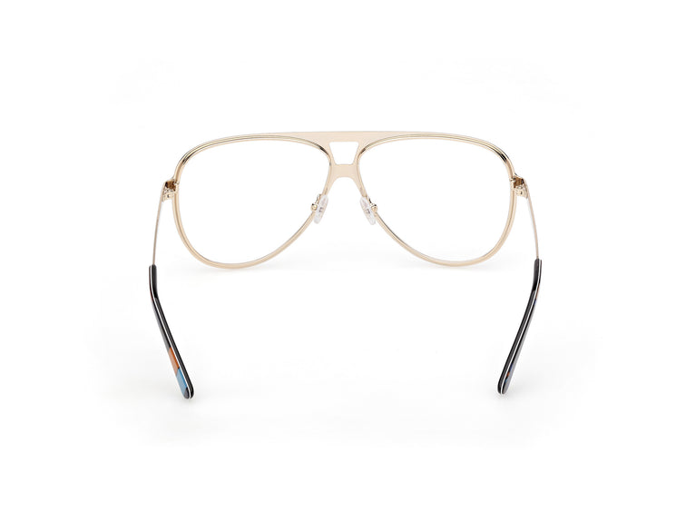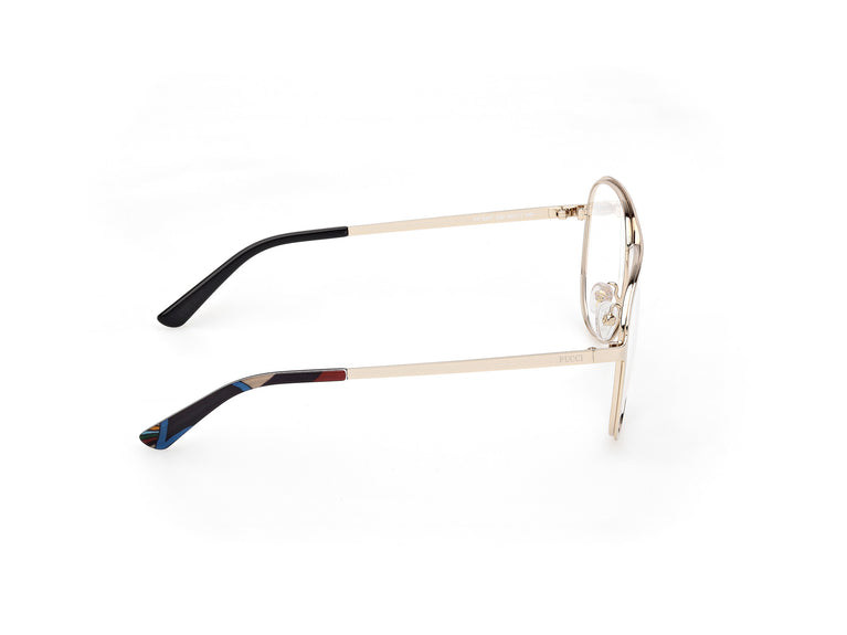 Descubre la sofisticación de las gafas ópticas Emilio Pucci, modelo Ep5267. Esta montura, inspirada en la clásica forma pilot, combina la elegancia del metal con un acabado en un resplandeciente dorado pálido. Las varillas, finamente diseñadas, ofrecen un equilibrio perfecto entre ligereza y resistencia, mientras que el puente añade un toque de distinción inigualable. Un calibre que encarna la esencia del lujo contemporáneo, pensado para la mujer que aprecia los detalles únicos y el diseño exclusivo.