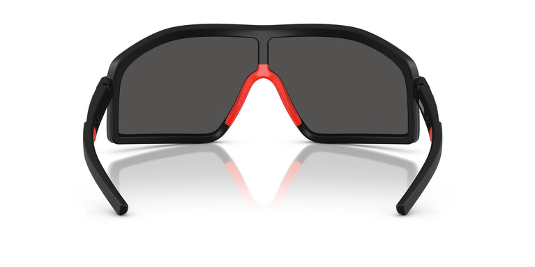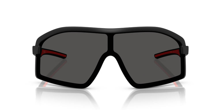 Una construcción de máscara que muestra una atrevida mezcla de formas enérgicas y materiales ligeros. La barra superior inyectada se une a las patillas del mismo color, creando un estilo deportivo con un toque de coche de carreras. El escudo de la Scuderia Ferrari completa el look, haciendo un guiño inconfundible al mundo de la F1. Monturas ligeras y futuristas en negro, blanco o rojo Ferrari, todas con acabado mate. Patillas inyectadas con terminales de goma inspirados en los coches de carreras.