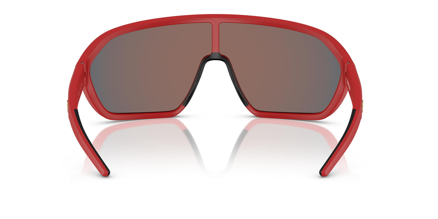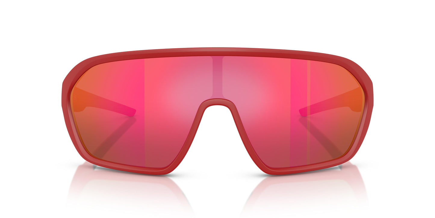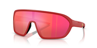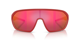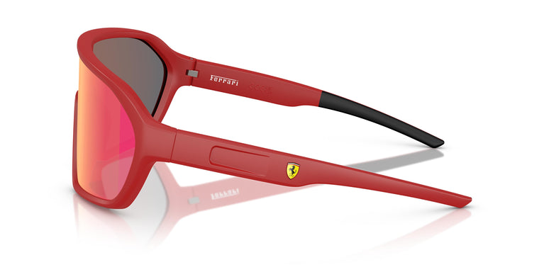 Esta montura envolvente, que encarna el ambiente enérgico de las carreras, ofrece un look deportivo. Un estilo escudo que presenta un diseño de montura completa inyectada con patillas finas. Disponible en rojo mate con lentes espejadas rojas para una inconfundible estética Scuderia Ferrari. Líneas fluidas y curvas suaves crean la forma ligera de la máscara inyectada. Las puntas de goma y el icónico logo Scuderia Ferrari Racing Shield realzan las patillas curvadas.