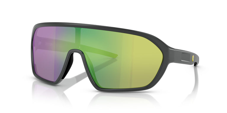 Esta montura envolvente, que encarna el ambiente enérgico de las carreras, ofrece un look deportivo. Un estilo escudo que presenta un diseño de montura completa inyectada con patillas finas. Disponible en rojo mate con lentes espejadas rojas para una inconfundible estética Scuderia Ferrari. Líneas fluidas y curvas suaves crean la forma ligera de la máscara inyectada. Las puntas de goma y el icónico logo Scuderia Ferrari Racing Shield realzan las patillas curvadas.