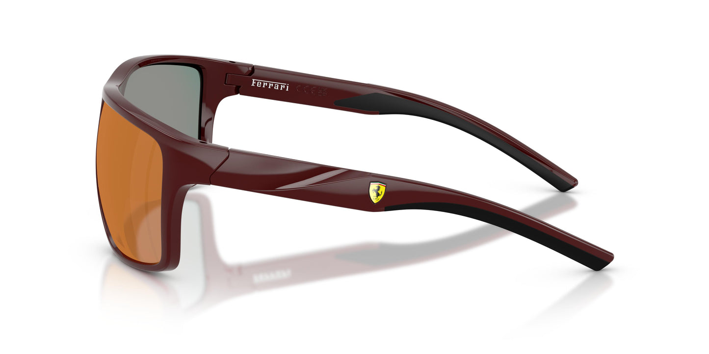 Esta forma cuadrada con una construcción ligeramente envolvente lleva el espíritu de las carreras a las gafas de uso diario. Desde los detalles de goma inspirados en las carreras hasta el diseño escalonado de las patillas, este modelo tiene un inconfundible estilo Scuderia Ferrari. Un estilo clásico con un toque de alta adrenalina. La montura 100% bi-inyectada está disponible en negro mate, rojo burdeos o azul ópalo. Varias opciones de lentes completan el look deportivo.