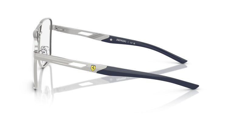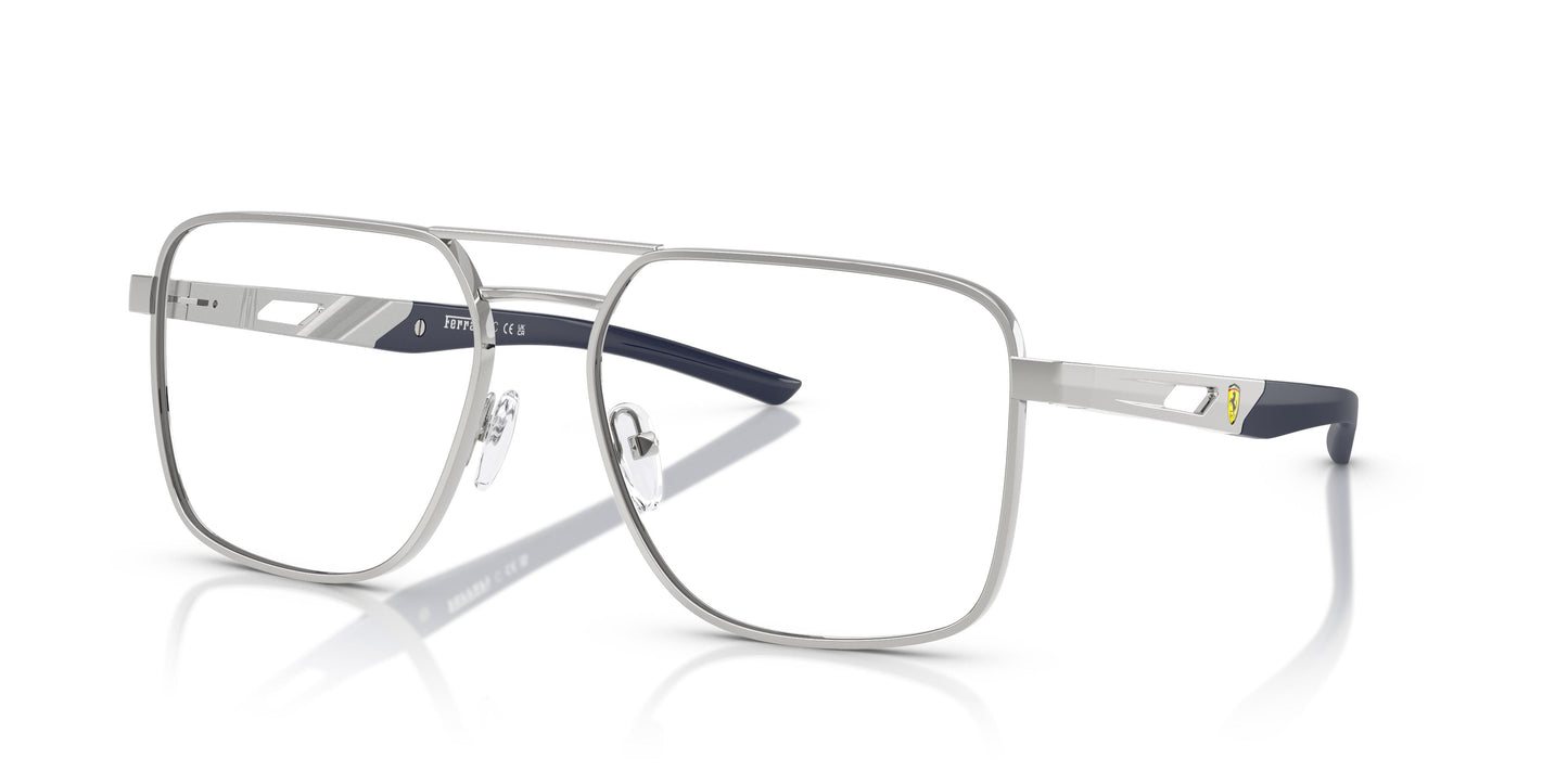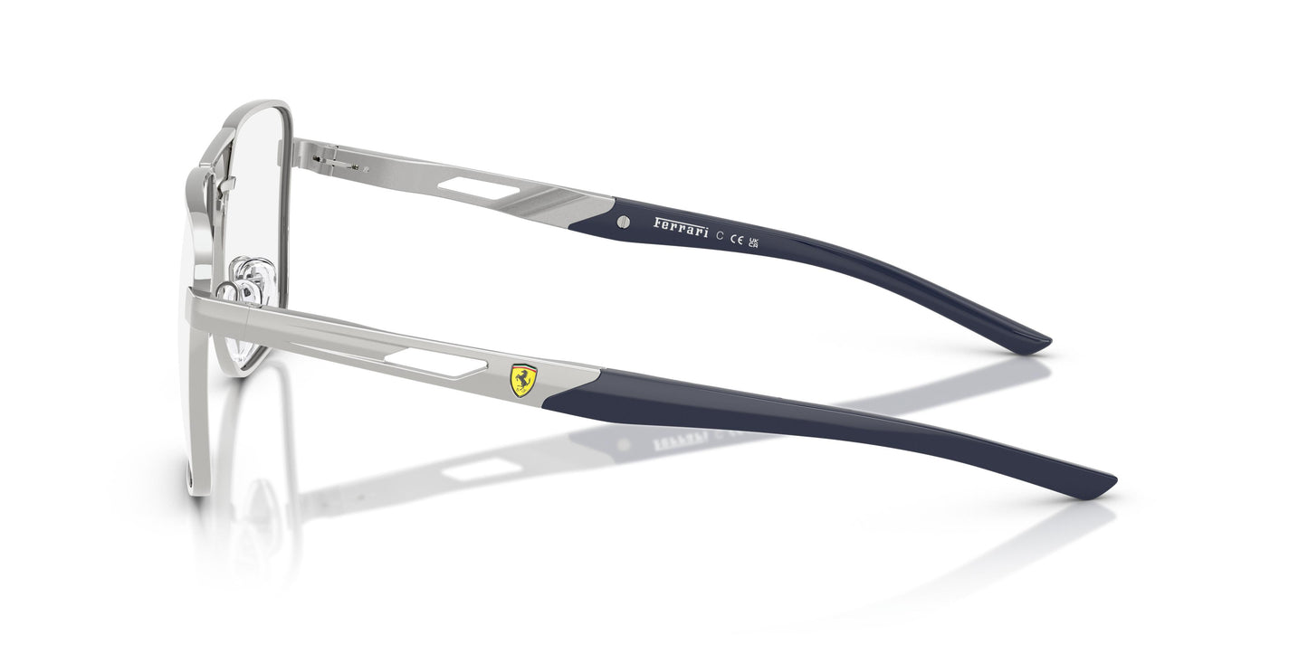 El metal unido a la bi-inyección chocan en este estilo óptico. Desde el elegante frontal metálico hasta las ligeras patillas, este modelo está impregnado de la energía de los deportes de motor. El estilo Athleisure y las puntas de las patillas en contraste de color completan el look con la reconocida alma Scuderia Ferrari. Aros metálicos de forma cuadrada con doble puente en colores monocromáticos negro, gunmetal o plata. Las patillas inyectadas con detalles de tomas de aire evocan el dinámico diseño de los coches de carreras.