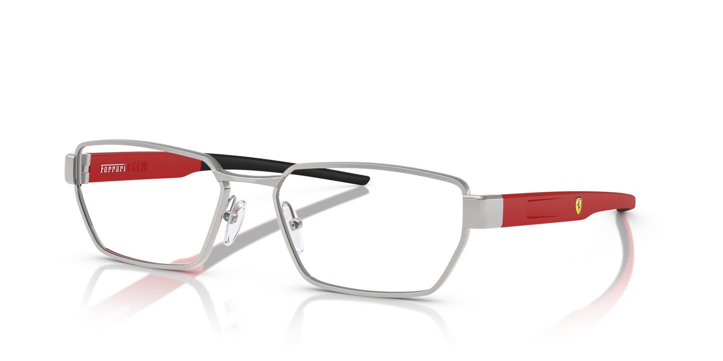 Elegante y moderno, este estilo de construcción mixta encarna el diseño de los coches de carreras. Los bordes metálicos y las patillas inyectadas crean un acabado de textura contrastada, con toques de rojo y amarillo que añaden una estética clásica de la Scuderia Ferrari. Un modelo óptico refinado con una innegable energía Ferrari. Un frente metálico estrecho y geométrico con un puente refinado y remaches envolventes. Patillas inyectadas en negro mate o rojo Ferrari con terminales de goma en contraste de color.