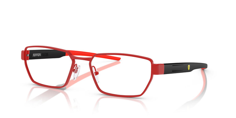 Elegante y moderno, este estilo de construcción mixta encarna el diseño de los coches de carreras. Los bordes metálicos y las patillas inyectadas crean un acabado de textura contrastada, con toques de rojo y amarillo que añaden una estética clásica de la Scuderia Ferrari. Un modelo óptico refinado con una innegable energía Ferrari. Un frente metálico estrecho y geométrico con un puente refinado y remaches envolventes. Patillas inyectadas en negro mate o rojo Ferrari con terminales de goma en contraste de color.