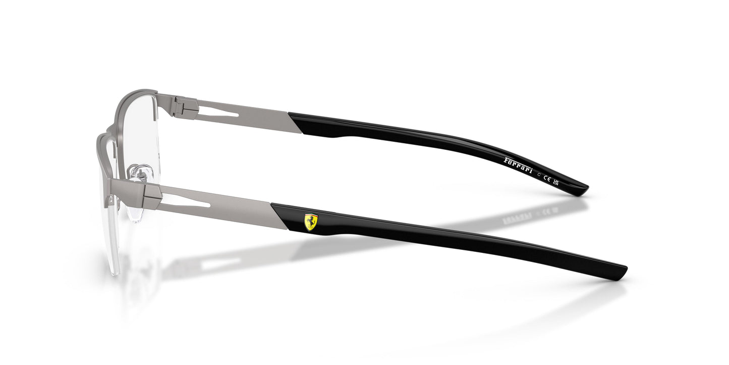 El estilo contemporáneo se une a la innovación de los circuitos en este elegante modelo rectangular. Desde las líneas deportivas cuadradas hasta la exclusiva bisagra personalizada sin tornillos, la herencia de diseño de la Scuderia Ferrari está en plena exhibición. Se completa con terminales en los colores de la marca: rojo, amarillo o negro. Monturas rectangulares de metal con una distintiva barra superior en negro mate, bronce de cañón mate o plata brillante. El mecanismo de bisagra sin tornillos conecta las patillas al frente, creando un perfil aerodinámico.