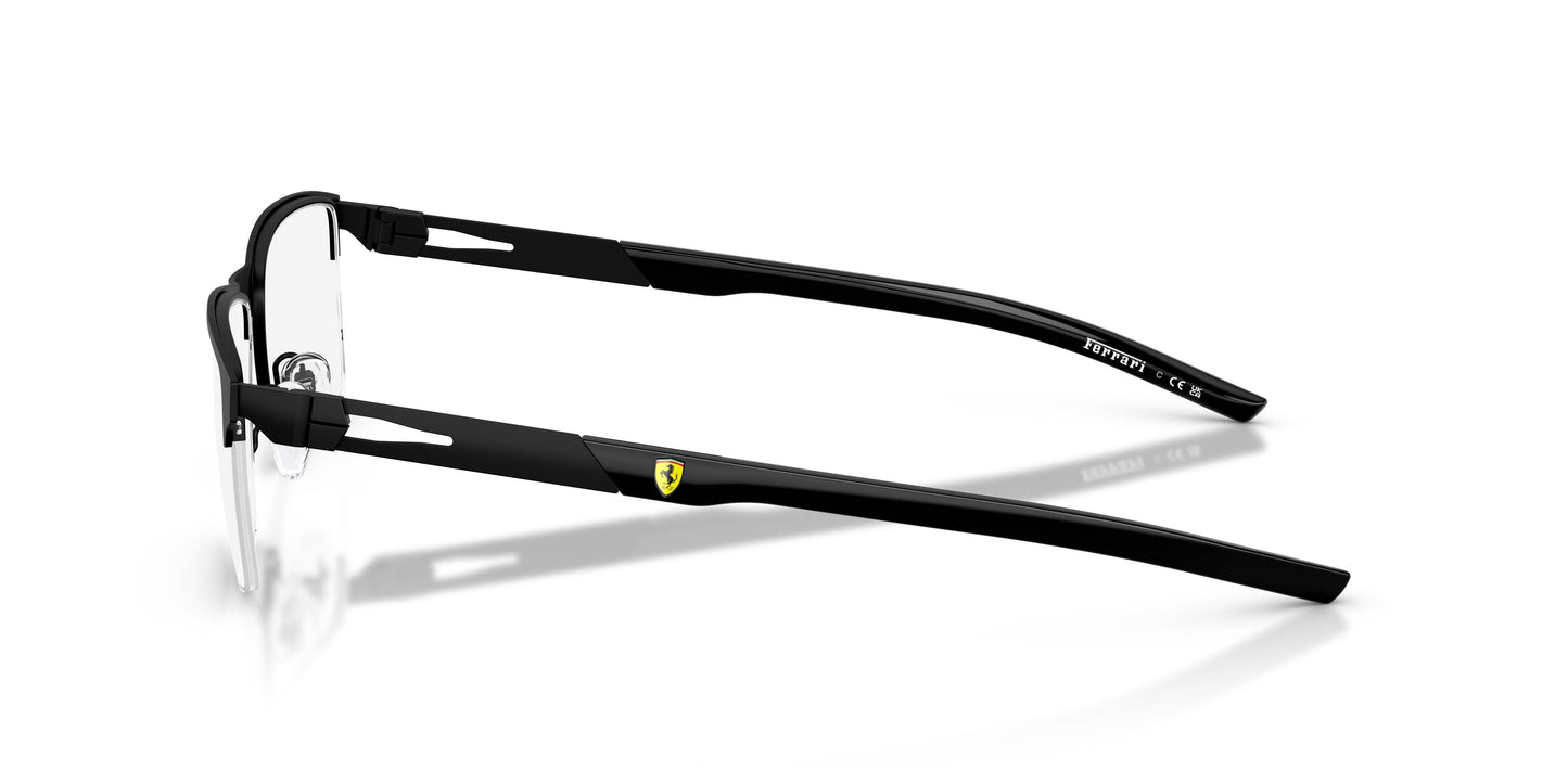 El estilo contemporáneo se une a la innovación de los circuitos en este elegante modelo rectangular. Desde las líneas deportivas cuadradas hasta la exclusiva bisagra personalizada sin tornillos, la herencia de diseño de la Scuderia Ferrari está en plena exhibición. Se completa con terminales en los colores de la marca: rojo, amarillo o negro. Monturas rectangulares de metal con una distintiva barra superior en negro mate, bronce de cañón mate o plata brillante. El mecanismo de bisagra sin tornillos conecta las patillas al frente, creando un perfil aerodinámico.
