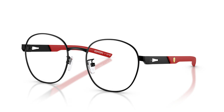 Sutiles expresiones del espíritu de competición de la Scuderia Ferrari HP amplifican este modelo minimalista. La bisagra sin tornillos aporta un elemento de innovación técnica, mientras que la forma redonda recuerda el estilo óptico clásico. Realizadas con un elegante metal, estas monturas aportan a las gafas un toque del espíritu icónico de la Scuderia Ferrari. Monturas redondas de metal con un elegante puente en negro mate, plata, gunmetal o gunmetal mate. La bisagra sin tornillos conecta las patillas ligeras con el frente, creando una característica de diseño aerodinámico única.
