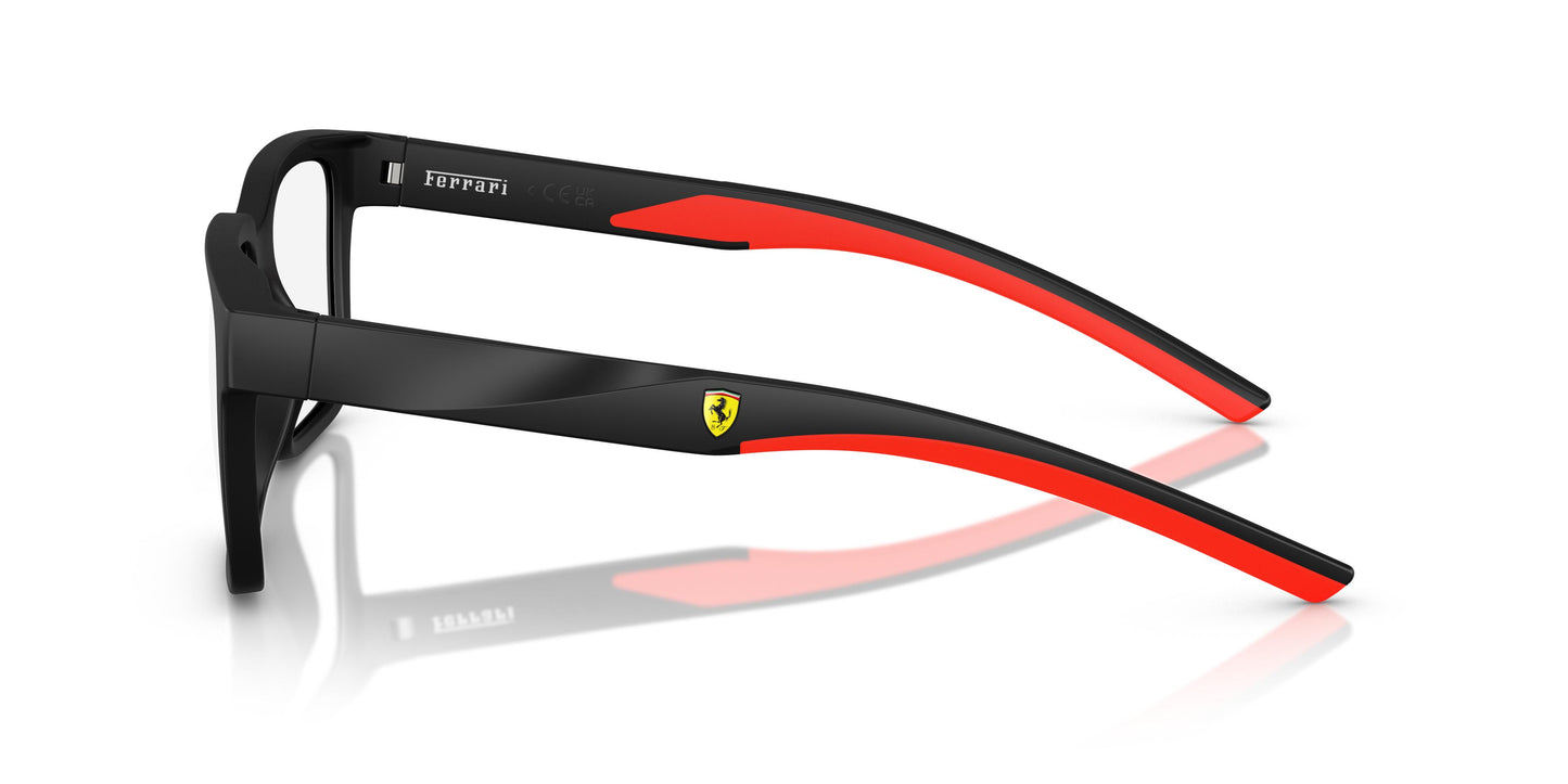 Diseño óptico atrevido con un toque aerodinámico. Este estilo ligero aporta la energía de la pista a las gafas con patillas dimensionales y elementos de goma. Un look cómodo para todos los días, con detalles inconfundibles de la Scuderia Ferrari. La montura cuadrada 100% bi-inyectada presenta detalles de goma en las puntas de las patillas. El diseño aerodinámico añade un toque de dinamismo a las patillas, que están acabadas con el icónico logotipo Racing Shield.