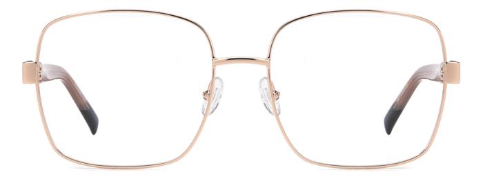 Presentamos las gafas Missoni Mis 0218, una joya de diseño óptico que encarna la sofisticación y el estilo contemporáneo. Estas gafas rectangulares para mujer destacan por su montura de metal en un elegante tono copper gold nude, que resplandece con sutileza. El puente delicadamente curvado armoniza con las varillas finamente elaboradas, ofreciendo una estructura ligera y cómoda. Con un calibre meticulosamente diseñado, estas gafas son el complemento perfecto para quien busca elegancia y distinción en su mirada.