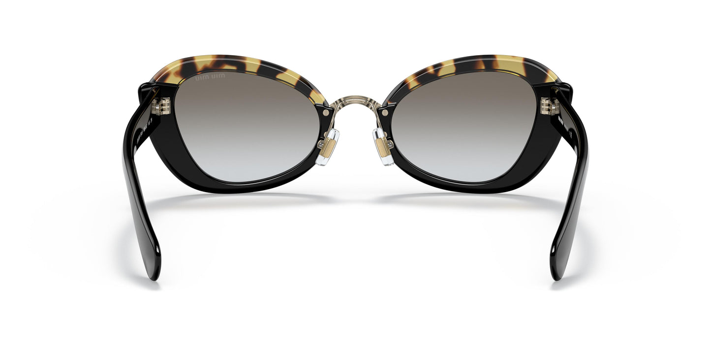 Para celebrar el diseño exclusivo de la expresión individual, este modelo rematado con una pizca de glamour de pasarela es un look único de MIU MIU y un verdadero must have de la temporada. Monturas de corte atrevido con puente y plaquetas de metal y cejas con pavé de cristal en 2 modelos Varillas redondeadas con el logotipo de la letra de metal MIU MIU bajo barniz