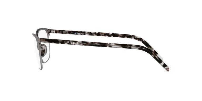 Modelos masculinos en una variedad de estilos con varillas típicamente finas con el logotipo de prada para un efecto de marca único. Frontal metálico rectangular clásico y masculino con barra superior de metal sutil logotipo de prada en las varillas de acetato para un look discreto
