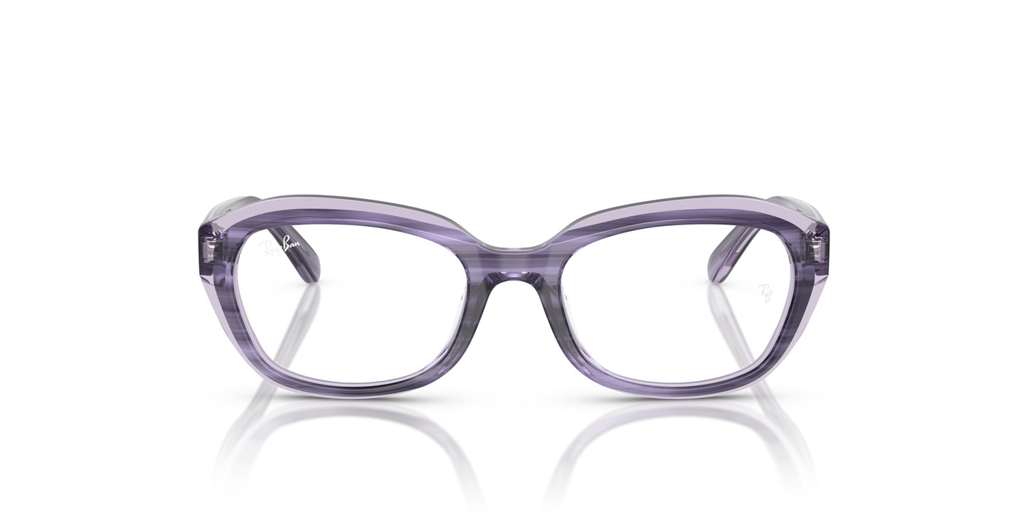 El estilo state street vuelve con esta interpretación esbelta y divertida. Con una forma muy ponible, este estilo combina el colorido habano a rayas con el acetato transparente para crear un look juvenil. Un estilo óptico ligero con un toque divertido y dimensional. Monturas estrechas con forma rectangular redondeada en bonitas habanas a rayas pastel o en negro clásico. Acabadas con el icónico logotipo de ray-ban en la lente y la patilla.