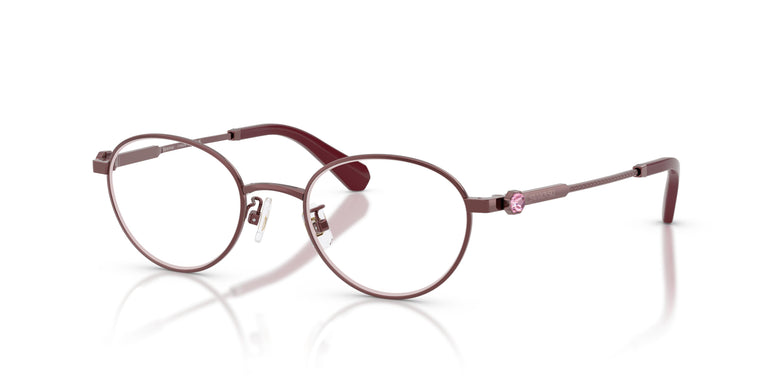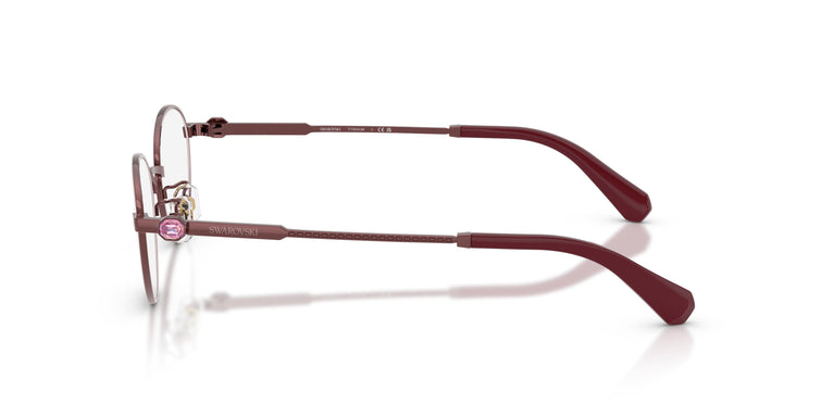 Fabricadas en titanio con una refinada forma redonda, estas gafas ópticas presentan elegantes motivos octogonales grabados en las patillas, adornados con cristales en forma de octágono para dar un toque de brillo, y acabadas con cómodas patillas de acetato que completan el sofisticado diseño. Un reluciente y exclusivo cristal octogonal se asienta maravillosamente en las patillas, que también incorporan el logotipo de Swarovski y pequeños grabados octogonales. Swarovski destaca en la selección de colores, ofreciendo monturas en oro pálido y marrón con cristales transparentes y monturas en oro rosa y burdeos con cristales rosa claro.