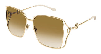 Descubra a essência da sofisticação com os óculos de sol Gucci Gg1020S para mulher. A sua armação quadrada num dourado deslumbrante captura a luz com cada movimento, enquanto o metal premium garante uma leveza excepcional. As lentes gradal em tom castanho suavizam o brilho do sol, proporcionando uma visão clara e serena. As hastes, desenhadas com precisão artesanal, culminam numa ponte que traz elegância e conforto. Um acessório essencial para quem aprecia o luxo intemporal.