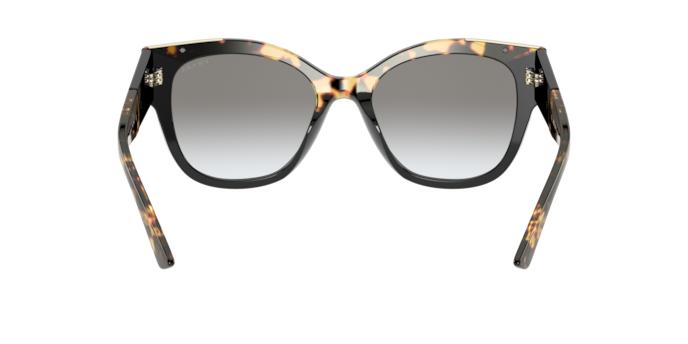 Uma atualização das assinaturas inconfundíveis da marca, detalhes em metal polido, letras em negrito e contrastes de cores característicos definem as silhuetas deste visual essencial. Um elegante formato olho de gato em novos acetatos personalizados com barra superior/contornos em dois tons e pontas de metal. Novas hastes largas com o logotipo monocromático da Prada e pontas alongadas em acetato Havana ou transparente.