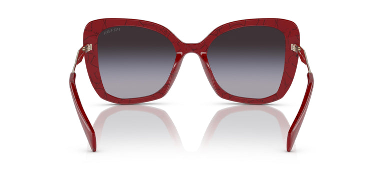 Una nueva varilla de metal destaca en la segunda edición de esta historia Painted in Prada. El glamour moderno ofrece una nueva versión del máximo estilo con texturas distintivas en nuevos colores. Llamativa montura de mariposa en acetato con lentes degradadas clásicas o claras muy femeninas Nueva forma geométrica de la varilla metálica con el logotipo a láser de Prada Milano