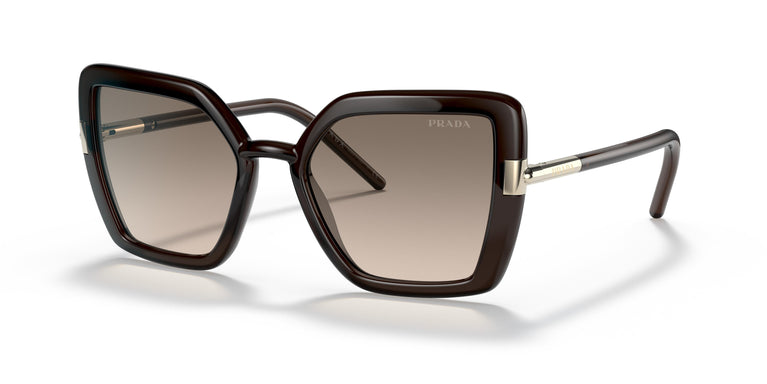 Forma femenina y volúmenes elegantes y redondeados, varillas tubulares únicas y placas metálicas doradas con el logotipo de PV20 Special Project. Forma rectangular de ángulo suave con una llamativa pieza intermedia de metal Inconfundibles varillas tubulares con una placa metálica dorada y el logotipo de Prada grabado a láser