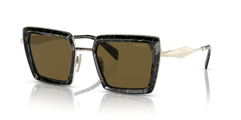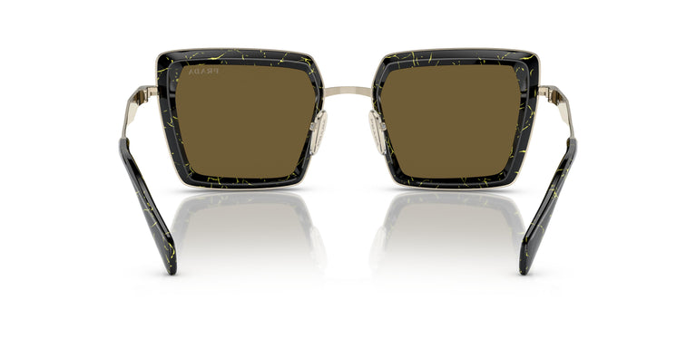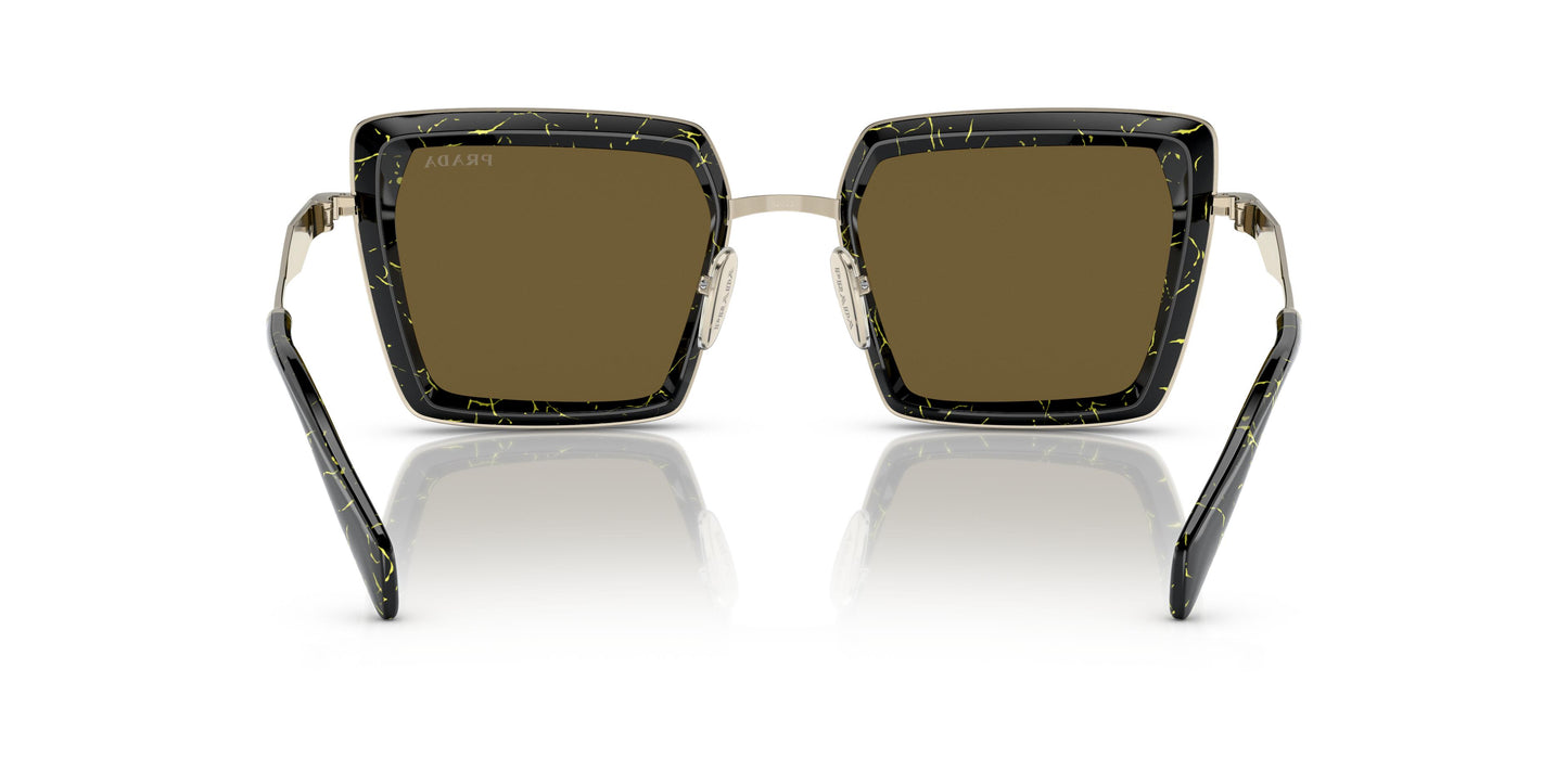 Painted in Prada representa una rica tradición de declaraciones de moda atemporales y sofisticadas. El diseño de este modelo se caracteriza por la llamativa silueta de la montura frontal y las nuevas varillas. Modelo de sol con un diseño atrevido en el frontal con aros de metal y acetato y puente de metal Logotipo de Prada Milano grabado en las varillas de metal de forma única con terminales de acetato
