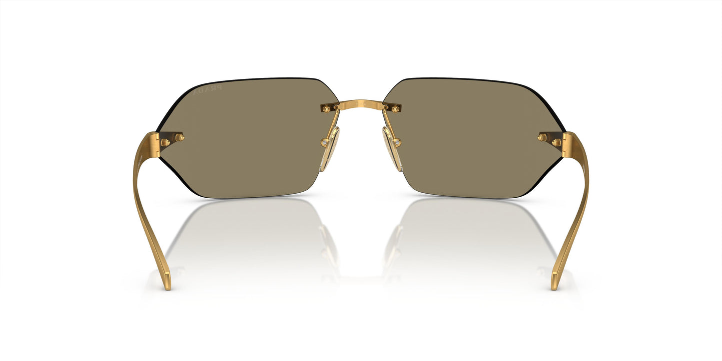 A Prada adentrou o futuro mantendo um tom clássico no desfile Outono/Inverno 2023, onde estes óculos de sol foram um acessório essencial. Inspirado na mais recente coleção de Alta Joalheria da Prada, este modelo apresenta detalhes dourados deslumbrantes e lentes envolventes contemporâneas. Os sofisticados componentes metálicos deste modelo lembram a mais recente coleção de Alta Joalheria da Prada e são banhados a ouro e aplicados à mão. Para um visual totalmente dourado, estão disponíveis lentes sem aro com efeito espelhado dourado ou cinza escuro, ambas com armação envolvente.