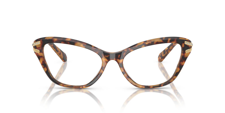 Com seus cristais e logotipo únicos, a Swarovski realça as hastes deste belo aro de olho de gato com seu ar de elegância e beleza. A peça de metal sobreposta, inspirada em joias hiperbólicas, não é apenas um detalhe decorativo, mas serve como dobradiça. Uma bela peça de metal serve como dobradiça e evoca a família hiperbola e o símbolo do infinito, com a parte superior destacada com cristais. Este aro de olho de gato em acetato foi combinado com uma seleção de cores de metal, incluindo uma opção bicolor de prateado e dourado, e preto.