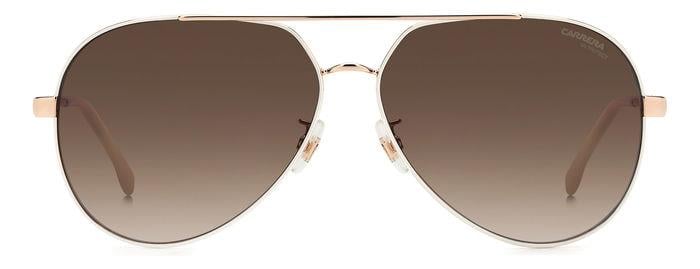 Explorați rafinamentul cu ochelarii de soare Carrera 3005/s, o emblemă a eleganței și stilului pentru femeia modernă. Cadrul din oțel inoxidabil alb cupru auriu oferă o strălucire rafinată, în timp ce designul pilot evocă un aspect clasic cu o întorsătură contemporană. Tâmplele sculptate delicat se unesc pe punte pentru a oferi o potrivire confortabilă și sigură. Lentilele colorate SF asigură o vedere clară și protejată, făcând din acești ochelari accesoriul perfect pentru orice ocazie.