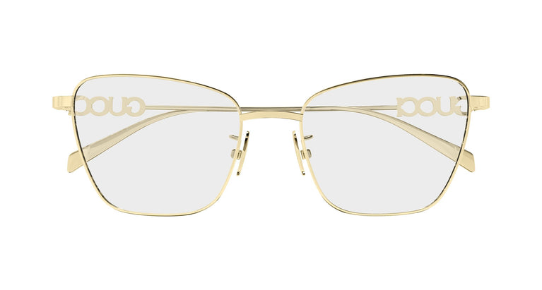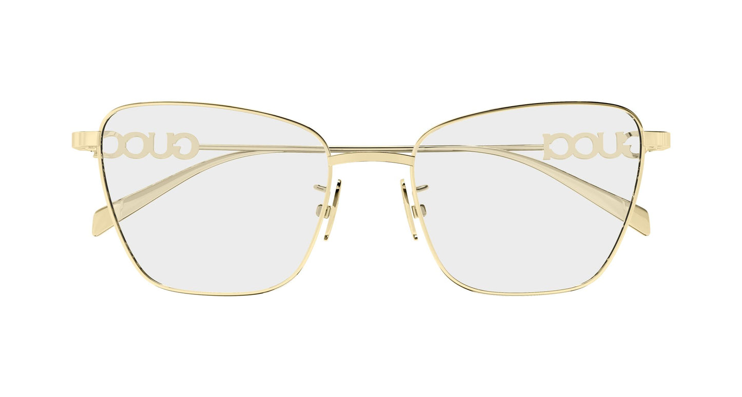 Modele metalice cu logo Gucci tridimensional pe tâmple. Design pătrat ochi de pisică. Logo-ul tridimensional Gucci pe tâmple. Paletă de culori feminină, comercială și contemporană.