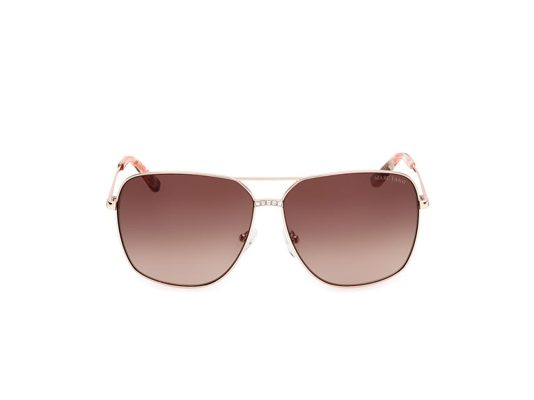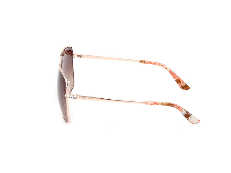 Descoperiți rafinamentul și stilul de neegalat al ochelarilor de soare Guess by Marciano, model GM00022. Acești ochelari în stil Navigator au o ramă din metal auriu strălucitor, care reflectă eleganța în fiecare detaliu. Tâmplele proiectate cu grijă oferă o potrivire perfectă, în timp ce puntea adaugă o notă de distincție. Lentilele lor, într-un ton subtil de maro degradat, nu numai că îți protejează ochii, dar adaugă și un aer de mister și glamour look-ului tău.
