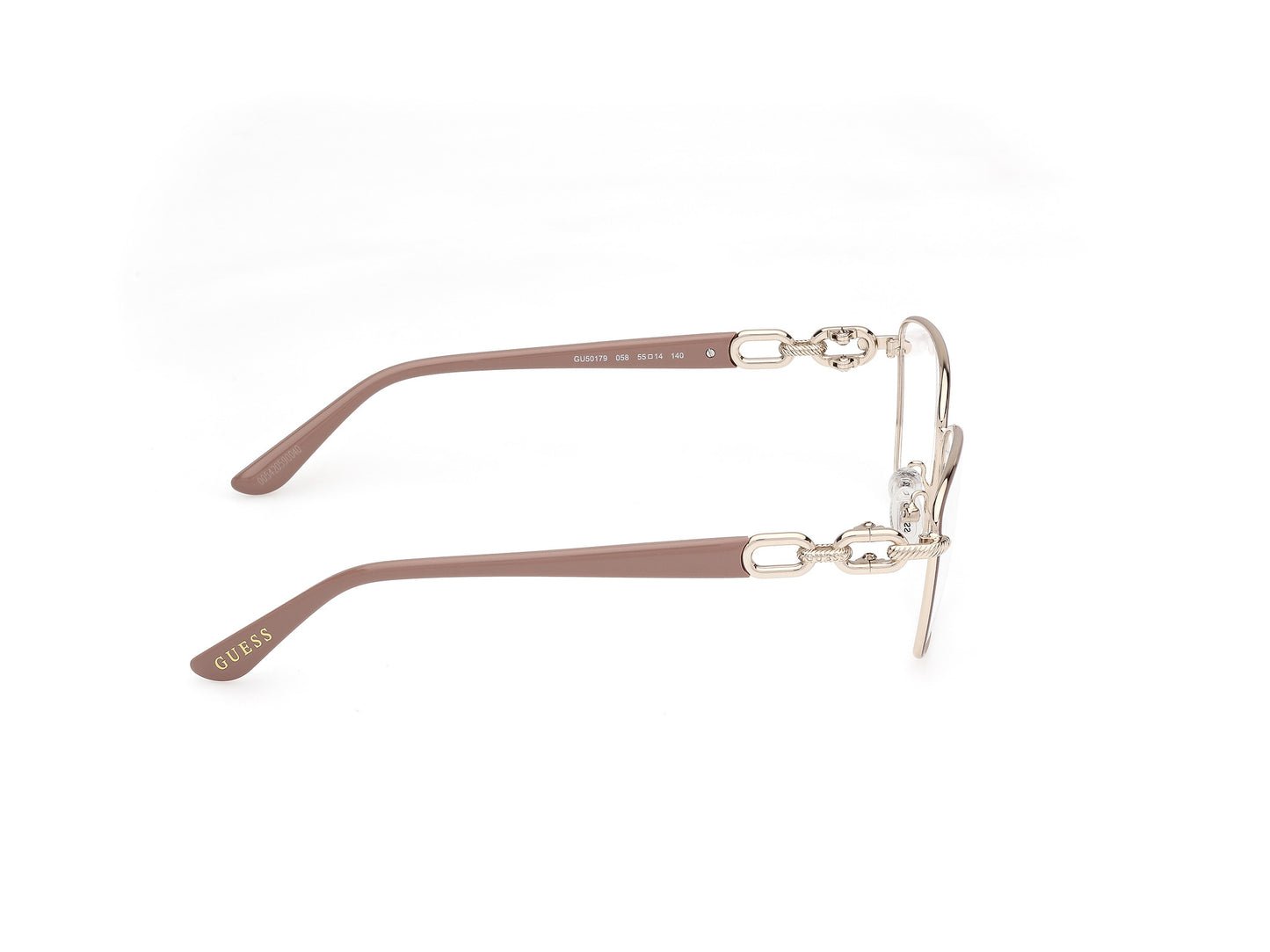 Descopera rafinamentul ochelarilor Guess model GU50179, ganditi pentru femeia moderna care apreciaza eleganta in fiecare detaliu. Cadrul lor metalic dreptunghiular într-o culoare sofisticată bej mat oferă o notă de distincție și rafinament. Tâmplele sculptate delicat se îmbină cu puntea pentru a oferi o potrivire impecabilă și confortabilă. Acești ochelari, cu calibrul lor perfect echilibrat, sunt complementul ideal pentru cei care caută un stil atemporal și avangardist.