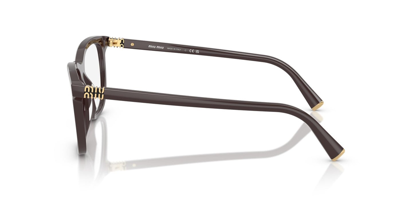 Reflectând amestecul iconic de jucăuș și rafinament al lui Miu Miu, acest design optic pătrat se remarcă prin volumele sale elegante și noile combinații de culori gradiente. Rama din acetat este completată de un logo metalic vertical elegant care face parte din structura balamalei. Acest design, disponibil și într-o versiune full-frame, prezintă temple subțiri din acetat care prezintă un logo vertical Miu Miu din metal integrat în structura balamalei. Un model optic pătrat disponibil într-o gamă bogată de culori din acetat, inclusiv două opțiuni noi de gradient în maro sau visiniu, precum și două opțiuni transparente.