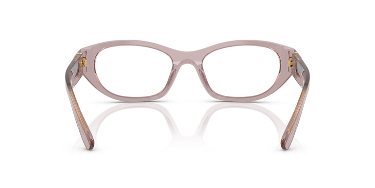 O întruchipare a fuziunii semnăturii Miu Miu de îndrăzneală și eleganță, acest design optic prezintă volume uimitoare. Rama din acetat este împodobită cu branding metalic, cu un logo vertical care se dublează ca o balama datorită mecanismului complicat al inițialelor, adăugând atât atractivitate estetică, cât și practic. Inițialele logo-ului Miu Miu vertical proeminent se deschid ca parte a unui mecanism de balamale, creând o declarație îndrăzneață. Disponibil într-o versiune full-frame, acest model este disponibil în negru, Havana, transparent și mov transparent.